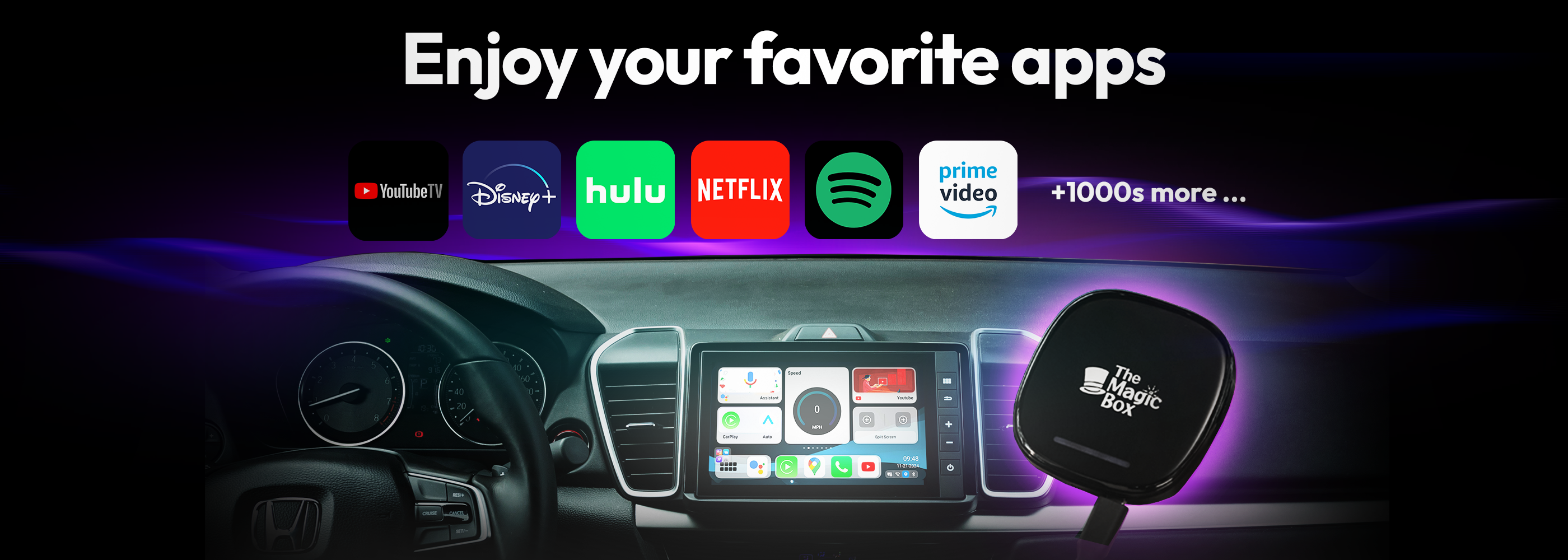 Watch anything from your favorite streaming platform on your car's display screen. Connect The Magic Box to any CarPlay device and instantly start enjoying it!